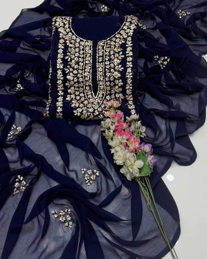 Handmade LCD Gotta Work on Soft Chiffon Fabric Kurta Style Shirt Along With Gotta Boti Work Dupatta.